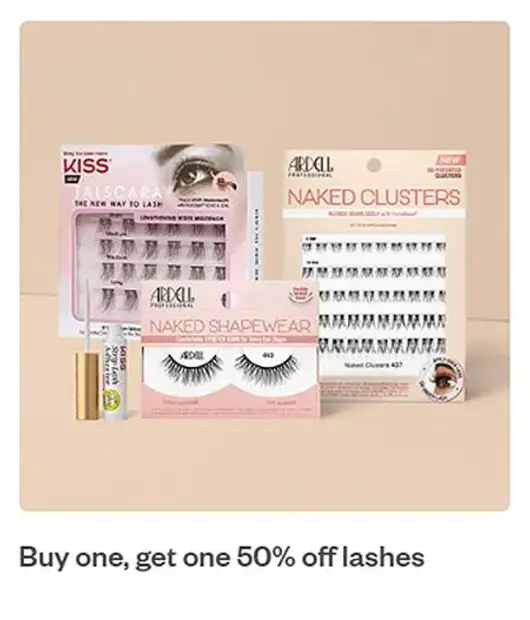 Shop in store and buy one, get one 50% off lashes for a limited time.