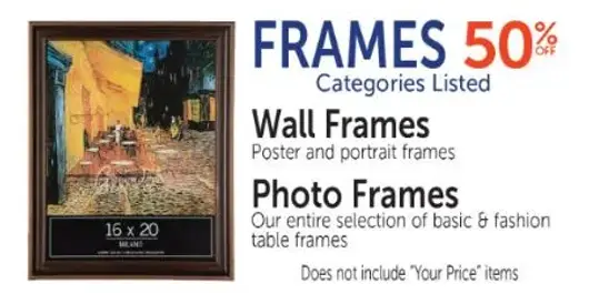 Save now! Shop in store and get 50% off on frames.