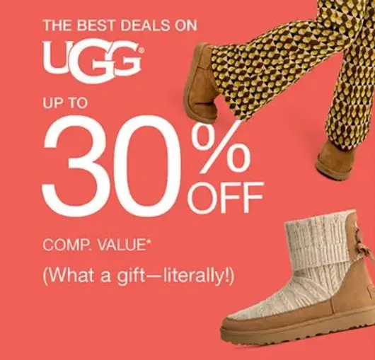 While supplies last! Shop in store and save up to 30% off on UGG.